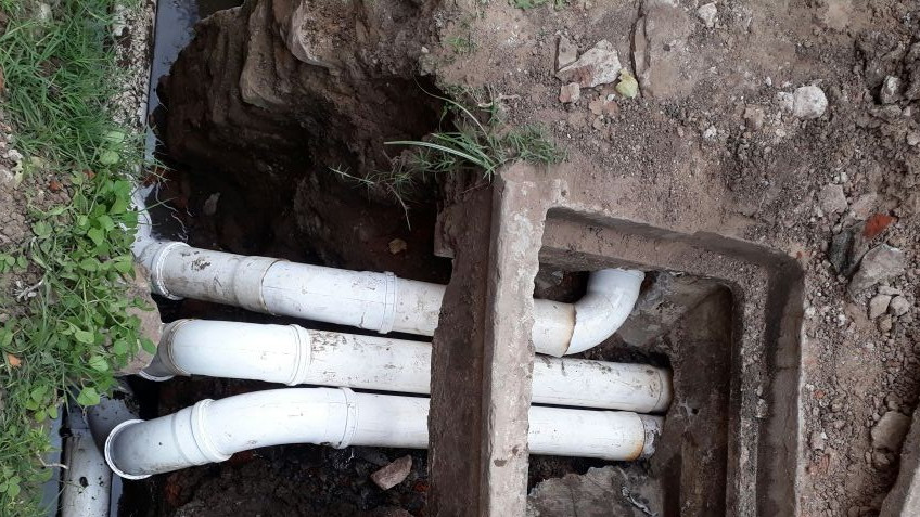 Personal de la Subsecretaría de Obras Publicas avanza con los trabajos de conexión de cloacas para el Hospital Municipal Dr. Francisco Raúl Montalverne sobre calle Julián Lynch.