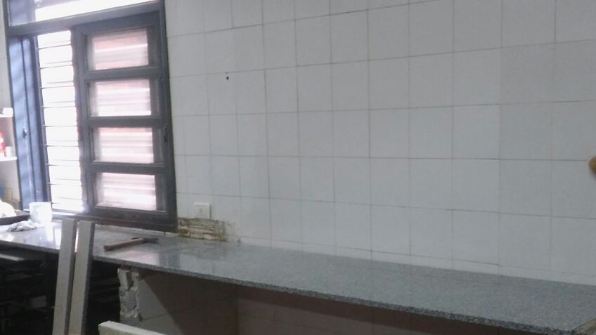 Personal de la Subsecretaría de Obras Publicas trabaja en la colocación de una nueva mesada en cocina del Hospital Municipal Dr. Raúl Francisco Montalverne.