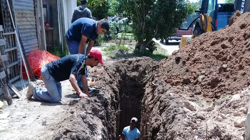 Se realizan trabajos de extensión de cloacas en la calla Ramos Mejía entre Hipólito Yrigoyen y Salta.