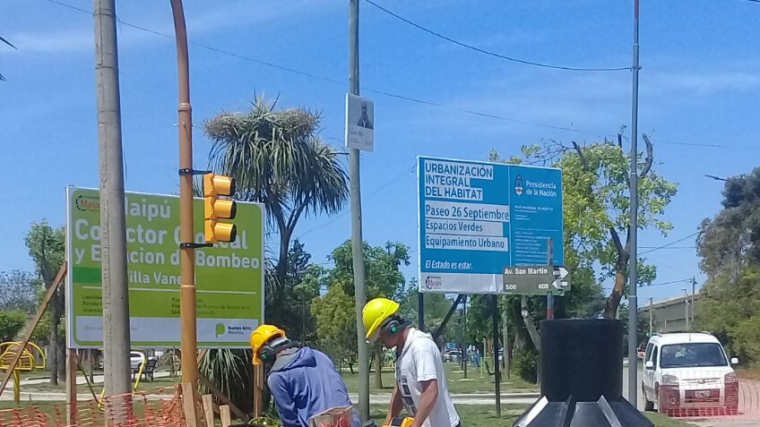 En esta oportunidad, se realizan trabajos para colocar cámaras de inspección y colocación de caños en la intersección de Av. San Martín y Alsina.
