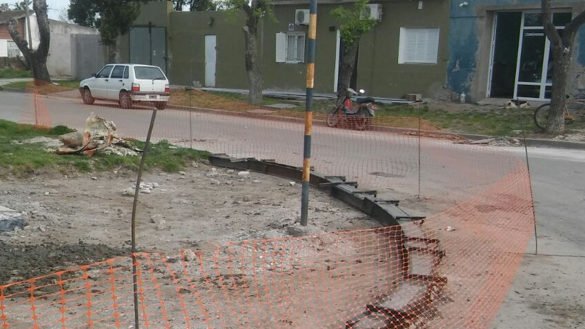 Personal de la Subsecretaría de Obras Públicas trabaja en la reconstrucción del cordon de la calle Necochea y Laprida, perteneciente a la Plaza Alvarado.