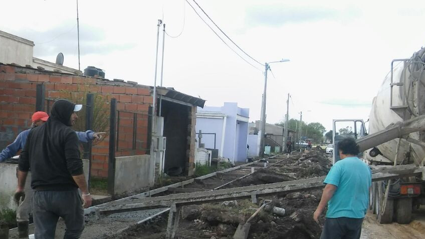 Continúan trabajando en el hormigonado de las veredas del barrio de las 70 Viviendas.
