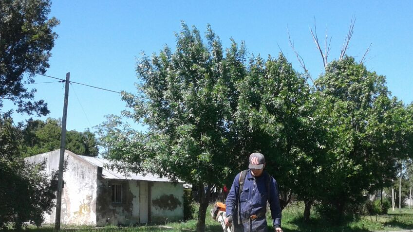 Personal de la Subsecretaría de Servicios Públicos y Espacios Verdes realiza trabajos de limpieza y corte de pasto en los desagües de la calle La Plata desde Las Heras hasta Ayacucho, boulevares de la calle La Plata y Prado Español.