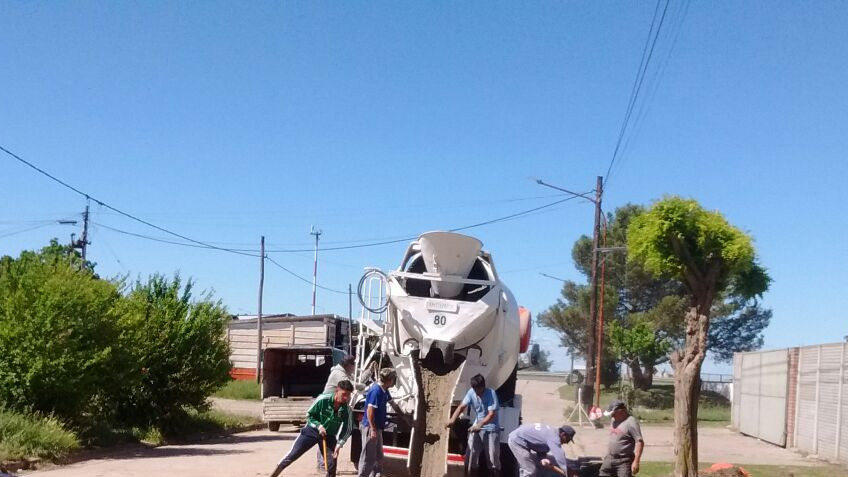 Personal de la Subsecretaría de Servicios Públicos trabaja en la reparación de bache de la calle Madero casi Autovía 2.